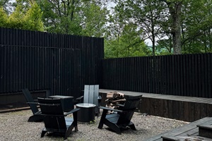 2 Bedrooms • 2 Bathrooms (1 full, 1 half) 2 Baths (1 full, 1 half) • Sleeps 1-4Hill Studio is a modern Catskills retreat with expansive glass, mountain views, and hidden projection screens that create a private cinema. Enjoy quiet mornings on the heated balcony, evenings by the fire pit, and a calm, design-forward space made for couples and creatives seeking nature, light, and simplicity.